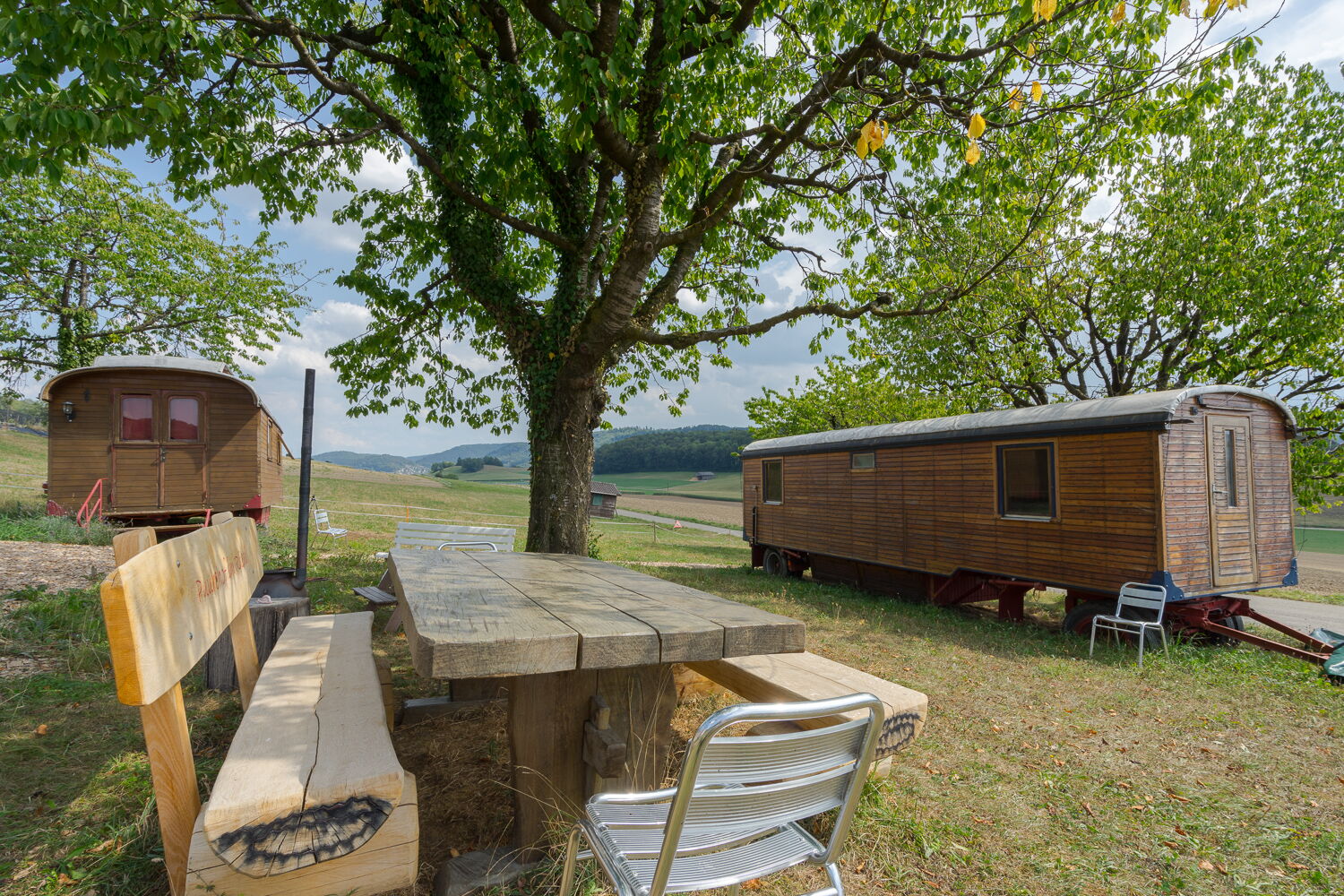 Doris: Già durante il primo fine settimana dopo l’apertura del sentiero didattico abbiamo avuto ospiti che hanno pernottato nel carrozzone: una famiglia del canton Turgovia, venuta proprio per Lea e Ben. A noi fa molto piacere, ed è fantastico anche per Vacca Madre Svizzera!